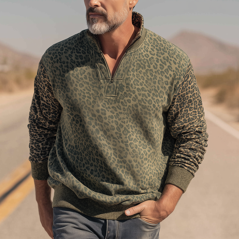 Explore the perfect blend of vintage and modern styles with our Men's Vintage Leopard Print Cotton Blend Stand Collar Sweatshirt. Crafted from high-quality cotton blend fabric, this sweatshirt provides both comfort and durability with a unique design that stands out.