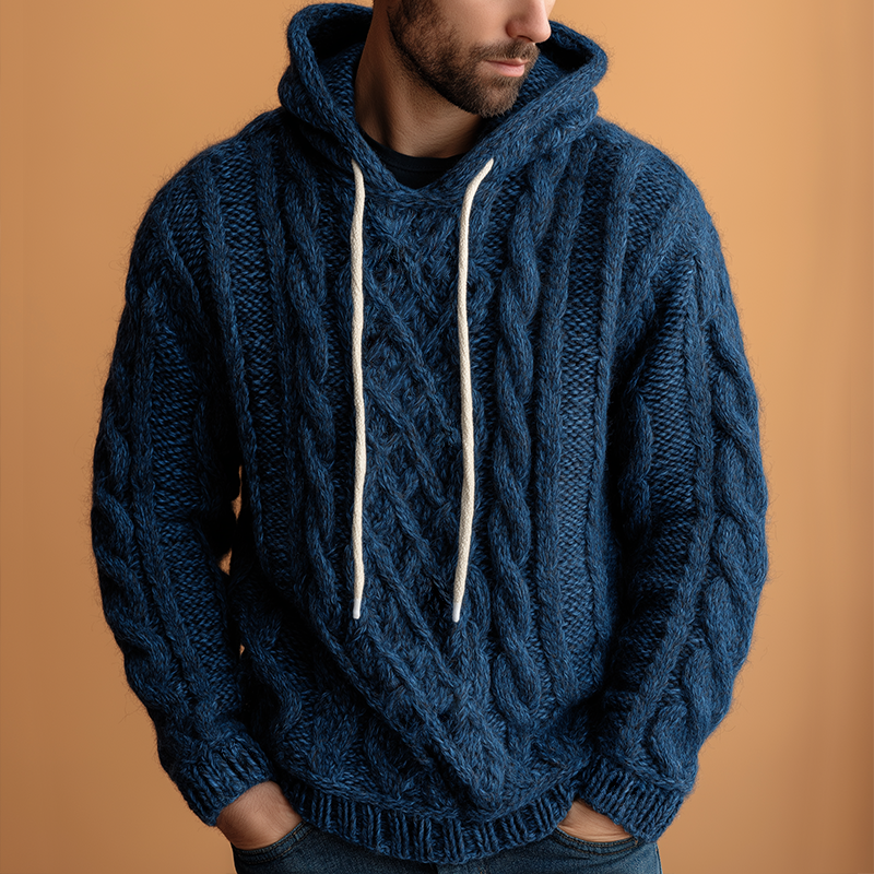 Men's Vintage Casual Cable-knit Sweater Hoodie MTA3097H4TO