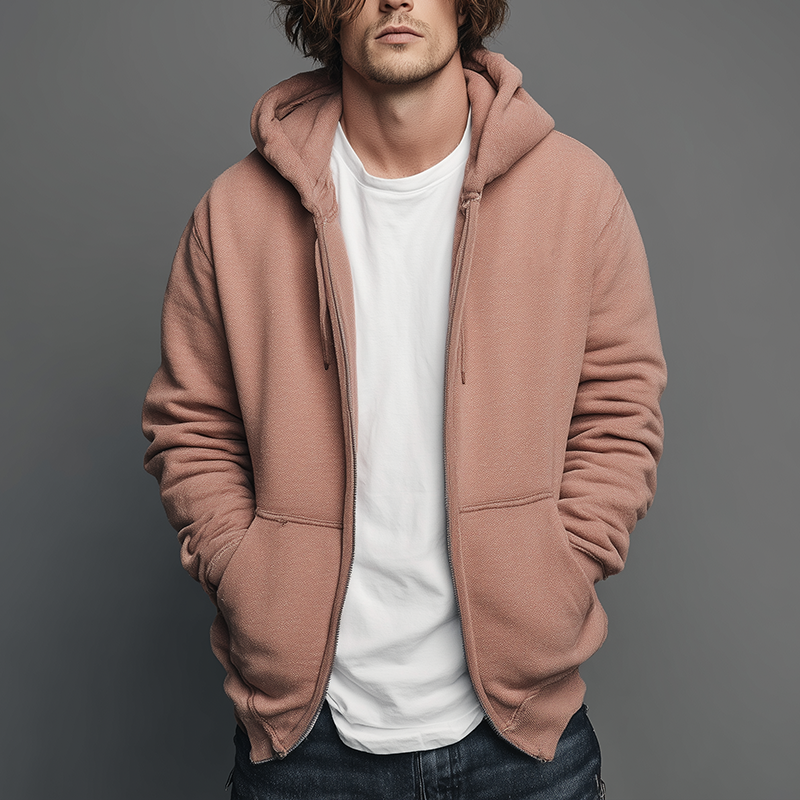 Men's Autumn Fashion Solid Color Hooded Zipper Sweatshirt MTA1357I3P