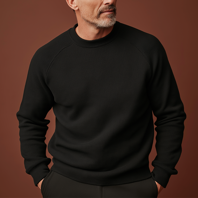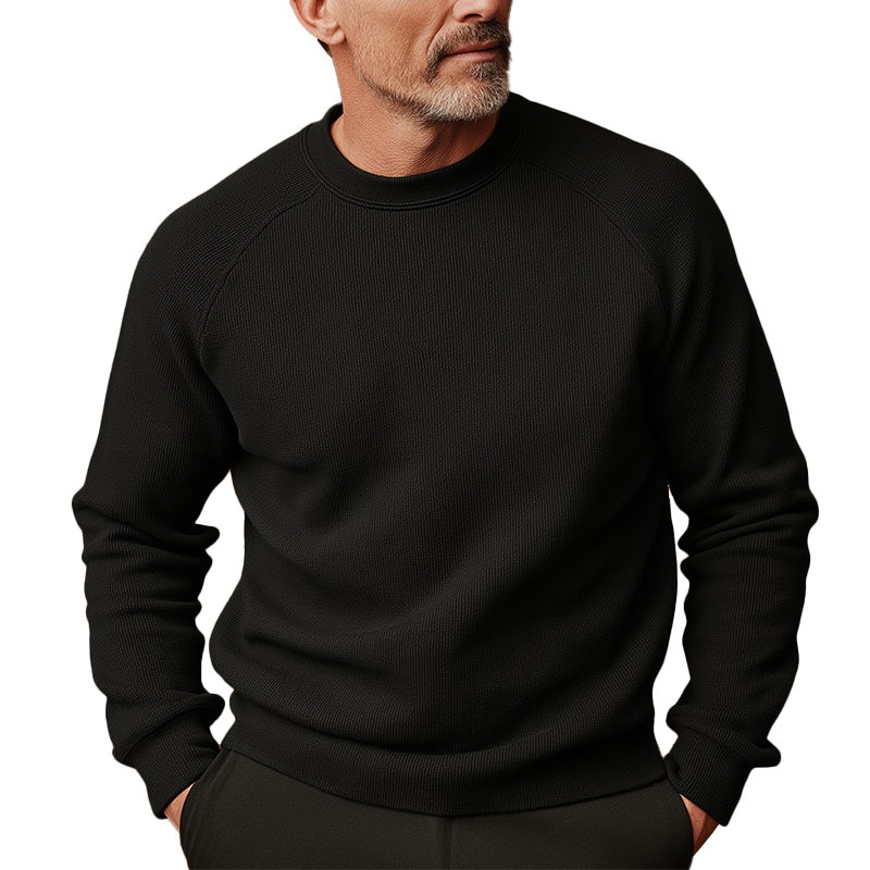 Men's Solid Color Waffle Round Neck Long Sleeve Sweatshirt 95420284Z
