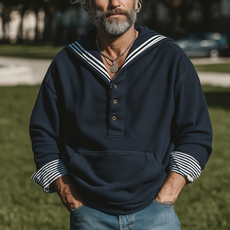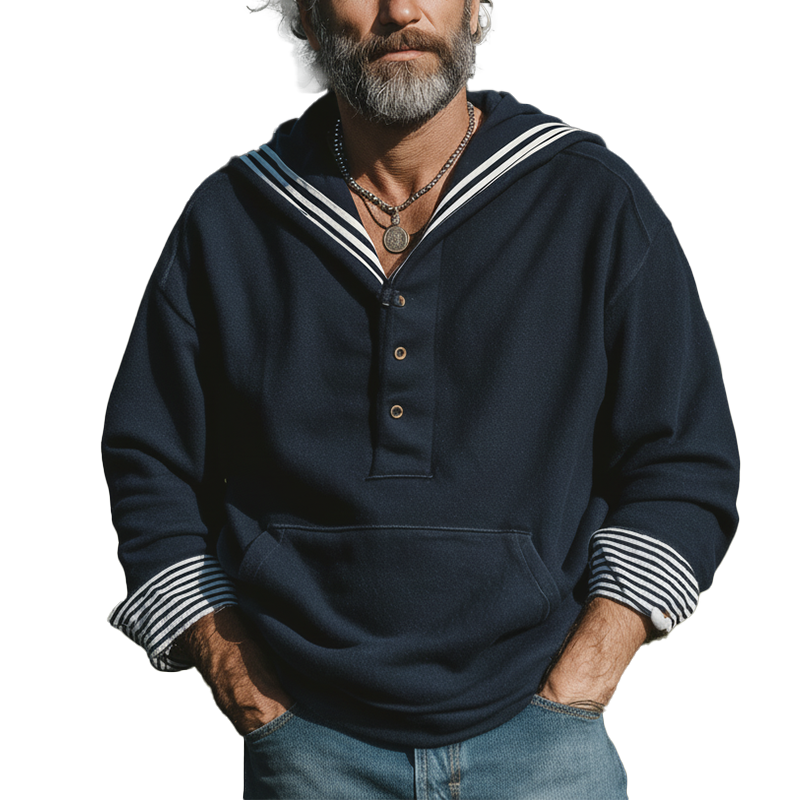 Men's Autumn Fashion Sailor Collar Large Pocket Cotton Blended Sweatshirt MTA1862I3P