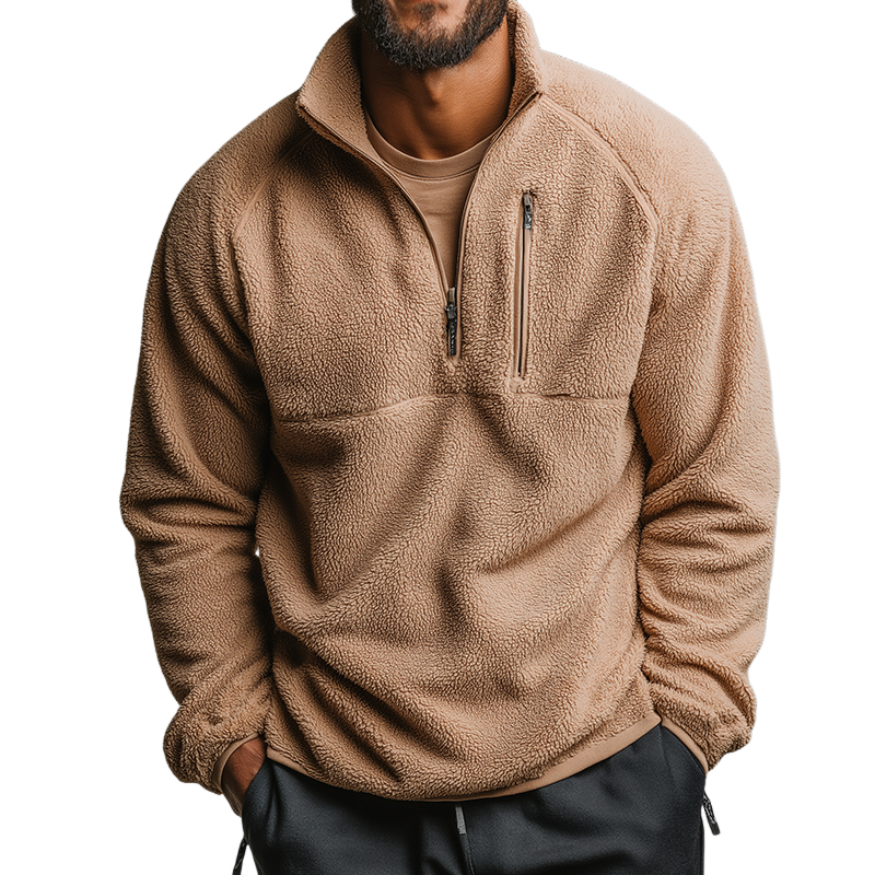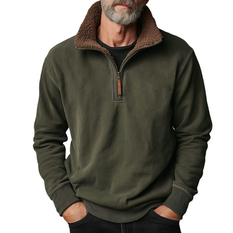 Men's Retro Casual Warm Zipper Neck Fleece Sweatshirt MTA1552I0TO