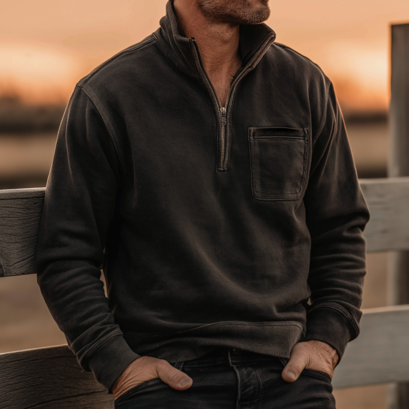 Men's Retro Casual Western Style Cotton Washed Zipper Neck Sweatshirt MTA2171H5TO