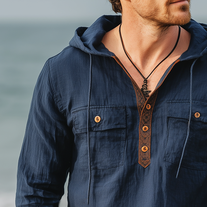 Crafted from a premium blend of cotton and linen, this hoodie provides a soft, breathable, and textured sensation against the skin. The cotton offers comfort and durability, while the linen enhances breathability and moisture-wicking properties, helping to keep you cool and dry. The fabric is lightweight yet insulating enough for mild spring and autumn weather, and easy to care for, with minimal wrinkling and shrinkage.Styles & Design: