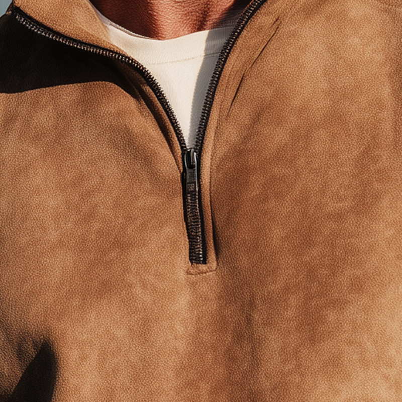 Product Name:Men's Fashion Faux Suede Half-Zip Polo Shirt
